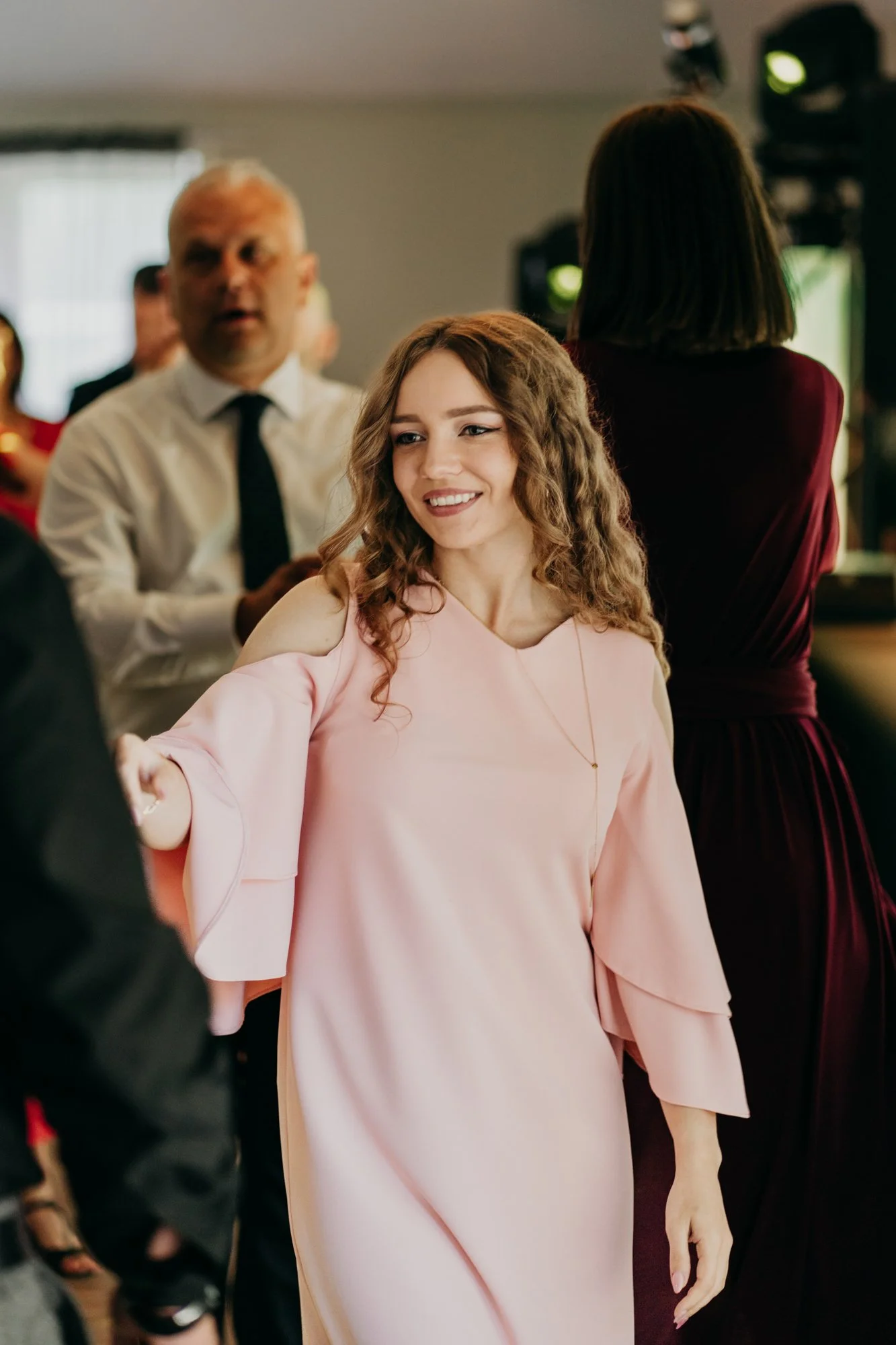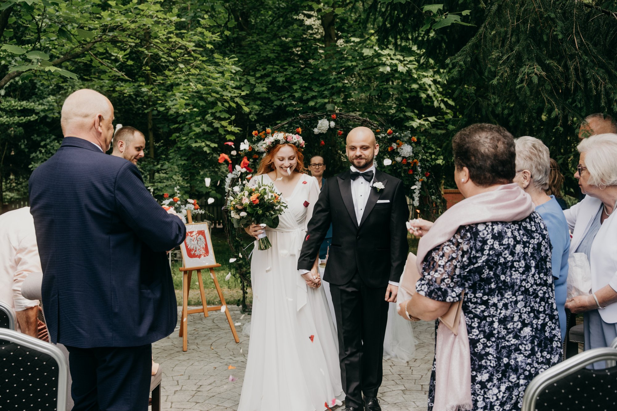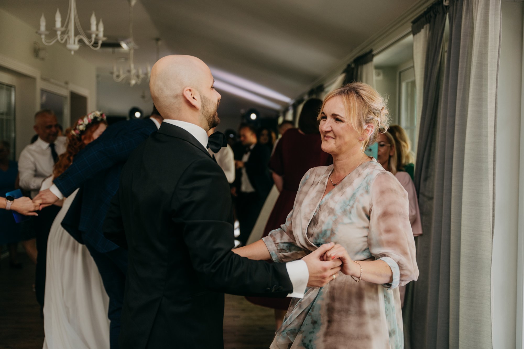 Gdy przed weselem dogrywaliśmy szczegóły, para szczególny nacisk kładła na odpowiednie uchwycenie wyjątkowo przemyślanej ceremonii, która okazała się mieć bardzo wzruszający klimat. Dawid po raz pierwszy tego dnia ujrzał Ewelinę, dopiero kiedy ta kroczyła w jego stronę, gdy rozpoczynała się ceremonia zaślubin. Podczas ślubu miało miejsce również zapalanie symbolicznej świecy, przewiązanie szarfy czy odczytywanie przez mistrzynię ceremonii historii pary. Przede wszystkim jednak, największy efekt “wow” na nas i wszystkich gościach pozostawiły własne przysięgi, które narzeczeni odczytali patrząc sobie w oczy.